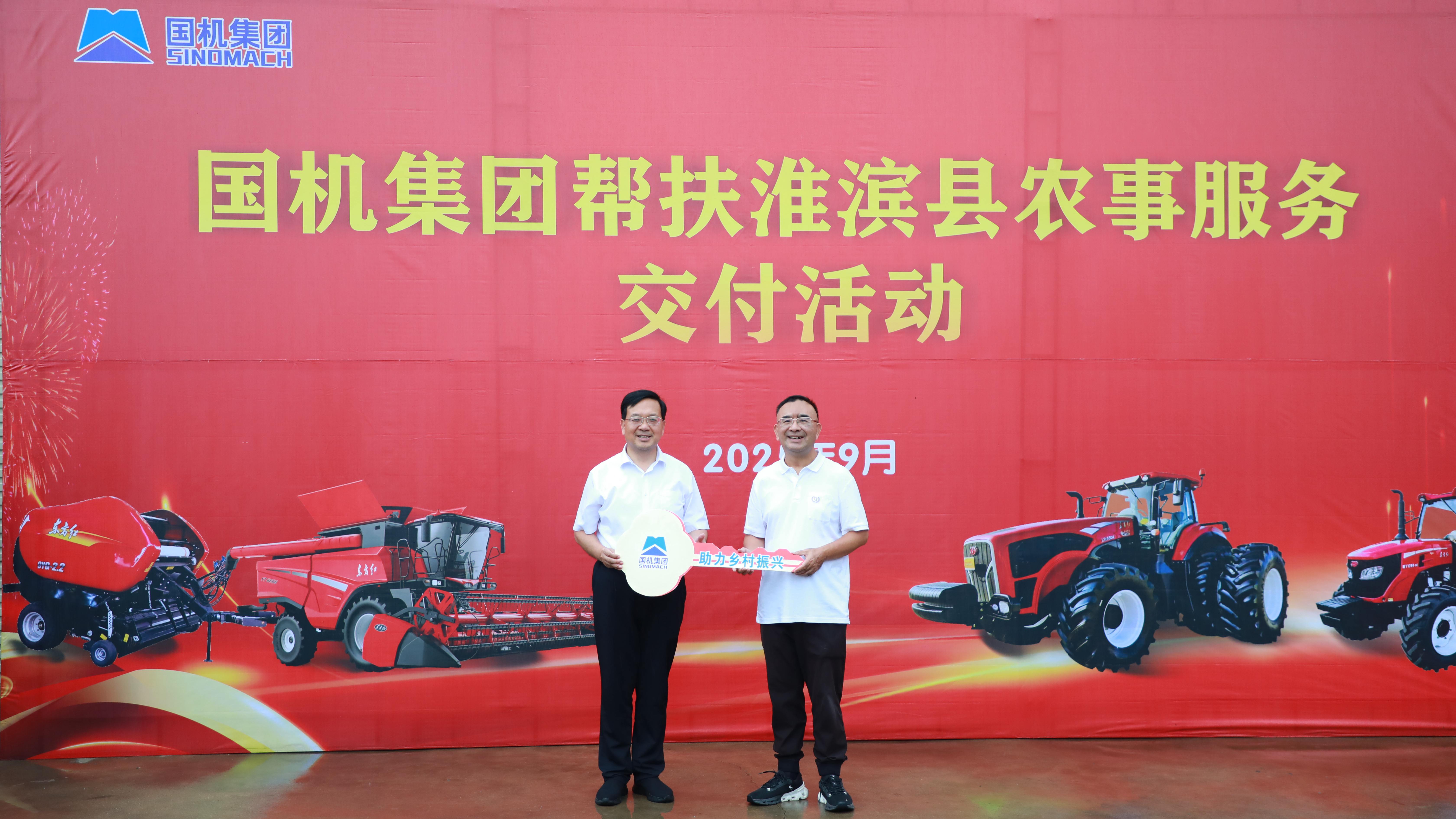 在淮滨县三空桥乡刘围村农事服务中心农机交付现场,丁宏祥代表金年会集团向淮滨县交付捐赠13台套农机装备。此次农机交付是集团落实帮扶要求的重要举措,将进一步推动该农事服务中心提档升级,切实解决小农户“购机难、用机贵”问题,以机械化效率提升带动粮食增产、农户增收。